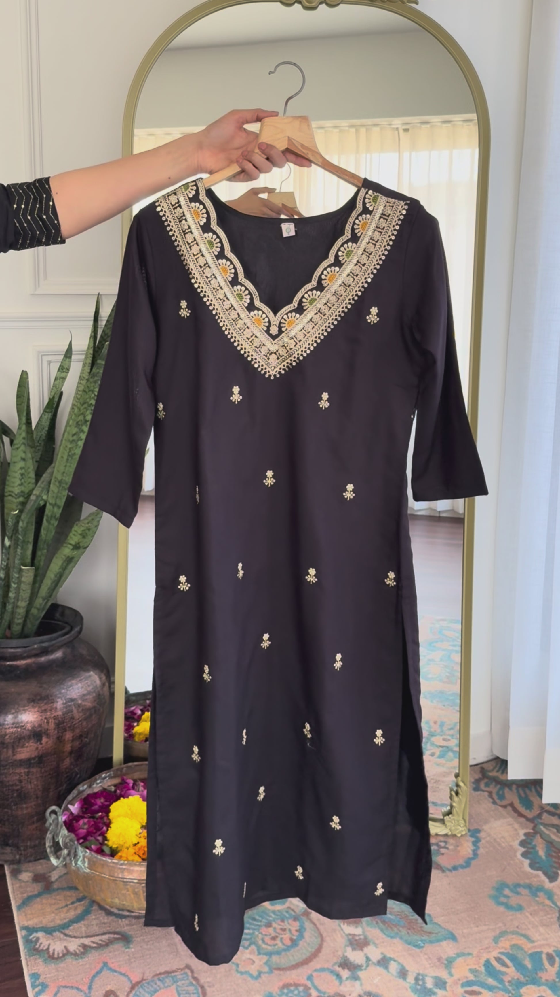 Black Designer Kurti Set