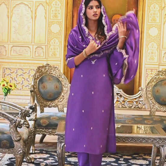 Ideal for festive and formal occasions, the set features exquisite detailing and comes in a beautiful Lavender color.