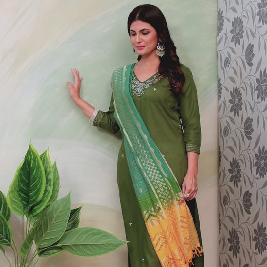 Top: Viscose Chanderi, Bottom: Viscose Chanderi, Dupatta: Russel.