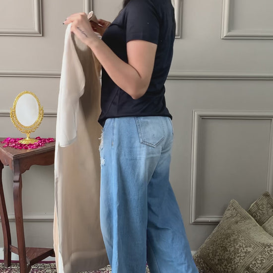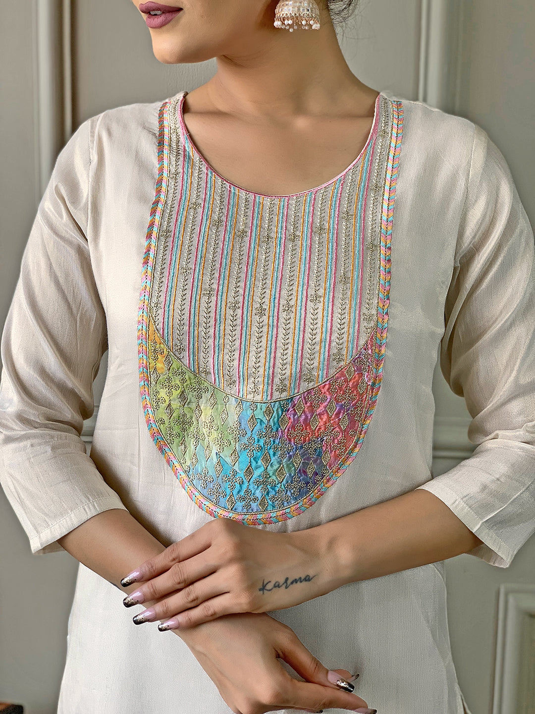 Introducing the Cream Designer Kurti Set from our 100 collection. Crafted with premium fabrics, this elegant ensemble includes: